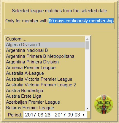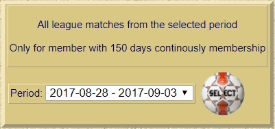 - Selected league matches from the selected period (90 days continuosly membership or 3 months prepaid membership fee)